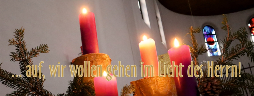 Wir laden Sie und Ihre Familie ein, im diesjährigen Advent gemeinsam mit uns unterwegs zu sein zum Herrn – nach einem Satz aus dem Buch des Propheten Jesaja, das wir zum Motto gewählt haben: „…auf, wir wollen gehen im Licht des Herrn“ (Jes 2,5).