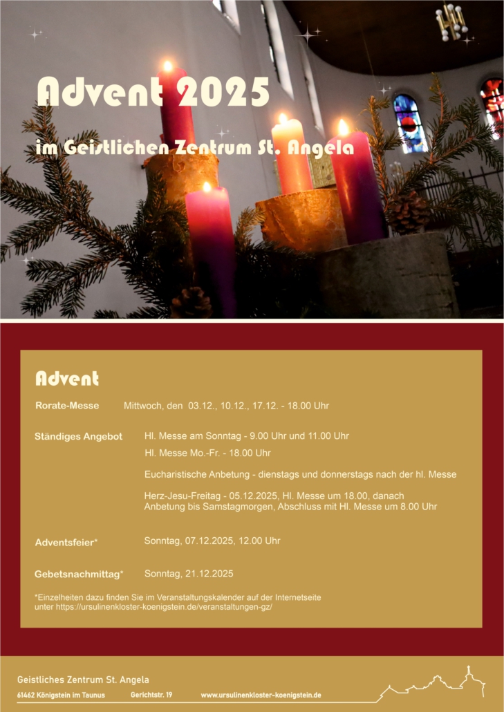 Wir laden ein zur gemeinsamen Vorbereitung auf Weihnachten – mit Adventsfeier, Gebetsnachmittag, Rorate-Messen und viel individuellem Gebet in den zahlreichen Anbetungen…