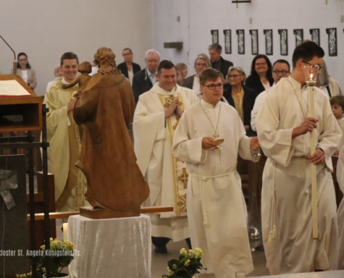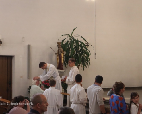 Und wieder gab es die Möglichkeit, sich die Schuhsohlen abzulaufen, um in unserer Kirche an einer Primizmesse mit anschließendem Primizsegen teilzunehmen! Am Hochfest Christi Himmelfahrt wurde die Familienmesse um 11.00 Uhr von Neupriester P. Michael Hemm LC gefeiert, der zweieinhalb Wochen zuvor, am Samstag, den 7. Mai 2022, in Rom zum Priester geweiht worden war. In seiner Predigt sprach P. Michael von seiner Freude über die Priesterweihe, seine Eindrücke aus den ersten Tagen als Priester, die feierliche Heimatprimiz, bei der wohl alle Einwohner des Heimatorts Rittershausen auf den Beinen waren, um sie vorzubereiten…