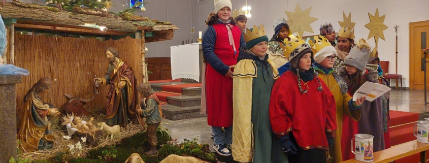Am heutigen Samstagnachmittag, um 14.00 Uhr, statteten uns die Sternsinger einen Besuch ab. Wie im Pfarrblatt angekündigt, war das Ursulinenkloster St. Angela eine der drei „Stationen“, die die Königsteiner Sternsinger in diesem Jahr aufsuchten, um ihren Segen zu bringen. Draußen fing es an zu schneien, in der Kirche erklangen Sternsinger-Lieder, gesungen von zwölf Mädchen und Jungen… Es war sehr schön. Wir hoffen, dass sich die neue Form der Sternsinger-Tour in Etappen etabliert und nächstes Jahr mehr Königsteiner den Weg zu uns finden, um die Sternsinger-Aktion zu unterstützen.