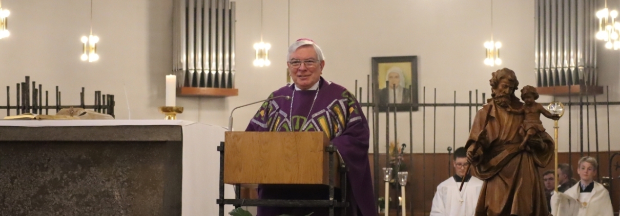 Am Sonntag, den 18. Februar, besuchte der Limburger Weihbischof Dr. Thomas Löhr das Geistlichen Zentrum St. Angela in Königstein und feierte die Familienmesse in der vollbesetzten Klosterkirche. Die Messe wurde von einer Jugendband mitgestaltet und ein Kinderchor sang das Eröffnungslied. Im Anschluss an den Gottesdienst nahm sich der Gast aus Limburg viel Zeit für Gespräche mit den Gottesdienstbesuchern. Bei der Begegnung mit der Gemeinschaft der Ursulinen erinnerte er daran, dass seine Schwester 1970 im St. Angela-Gymnasium das Abitur bestand und stets dankbar auf ihre Schulzeit zurückblickt. Ebenso besuchte er den Klausurbereich der Legionäre Christi, die als Priester im Geistlichen Zentrum mitwirken…