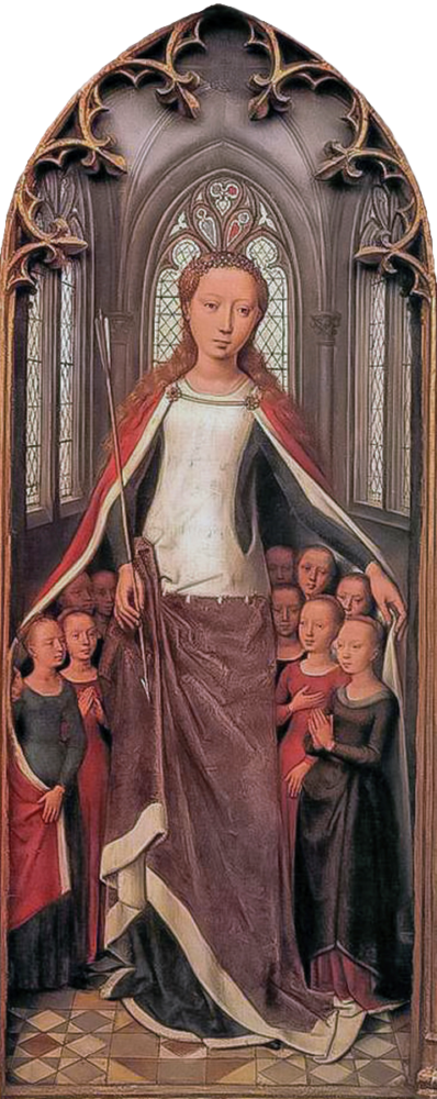 Um die heilige Ursula, deren Verehrung sich seit dem 12. Jahrhundert im Abendland weit verbreitete, rankt sich eine Fülle von Legenden. Es gibt jedoch eine in Stein gehauene Inschrift (aus dem 4. oder 5. Jahrhundert) in der Ursulakirche in Köln darüber Auskunft, dass an der Stelle der heutigen Ursulakirche mehrere Jungfrauen aus dem Osten (Orient) den Märtyrertod fanden. Vermutlich erlitten Ursula und ihre Gefährtinnen gleichzeitig mit dem ebenfalls als Stadtpatron von Köln verehrten heiligen Gereon in der Diokletianischen Verfolgung (um 300) den Tod. Die Legende jedoch bringt ihr Martyrium mit dem späteren Einfall der heidnischen Hunnen in Verbindung.