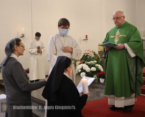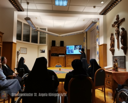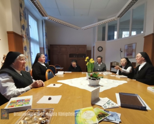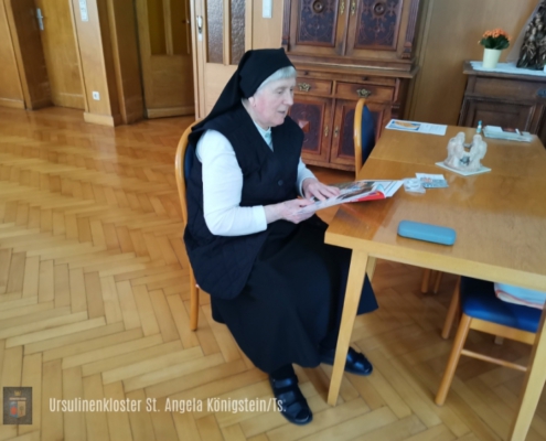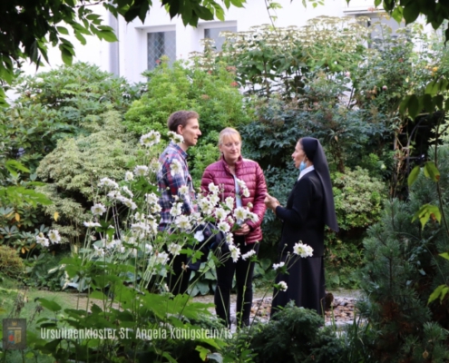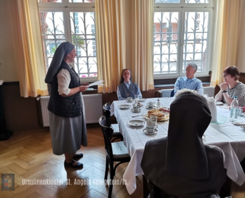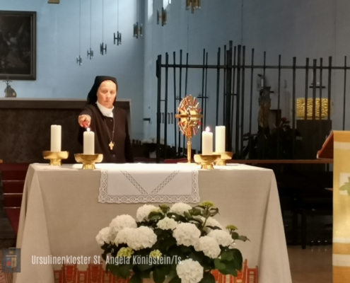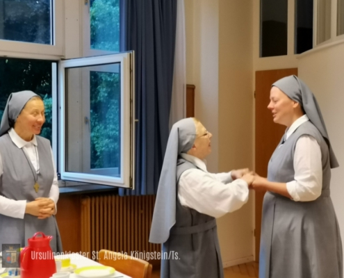 Das Evangelium und die Schriften der hl. Angela dienen dabei als Wegweiser durch unser Leben. Der Heilige Geist wiederum hilft uns zu erkennen, wie das ursulinische Charisma, das sich seit bald 500 Jahren in der Welt entwickelt und verbreitet, heute, im 21. Jahrhundert, und hier in Königstein, im Rhein-Main-Gebiet, umgesetzt werden soll…