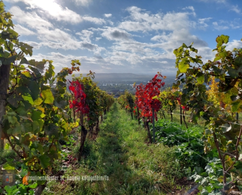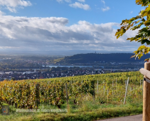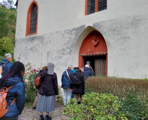 Unsere Wallfahrt von der Abtei St. Hildegard in Eibingen nach Marienthal am Samstag, den 14. Oktober 2023, übertraf alle Erwartungen… entgegen allen Wetterprognosen begleitete uns strahlender Sonnenschein. Die wunderbare weite Sicht zu Beginn der Wallfahrt öffnete die Herzen entsprechend weit für die Gnaden des Herrn und so brachen wir auf und beteten in gemeinsamen und persönlichen Anliegen…